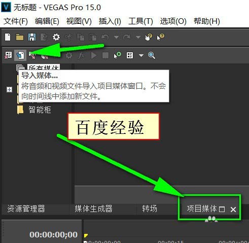 1、打开vegas便能看到项目媒体中的“导入”按钮啦。
