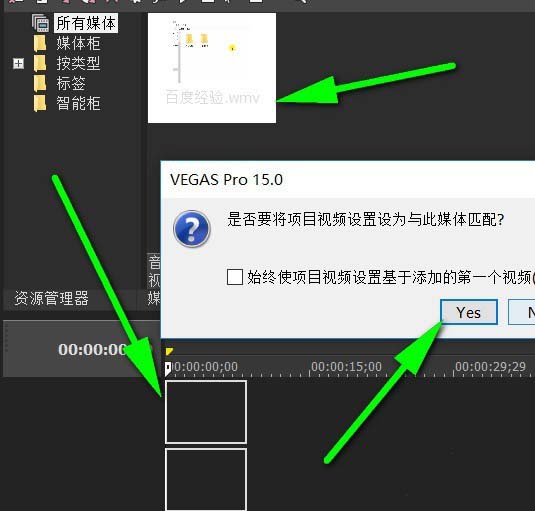 3、而如果拉动素材到下边便会弹出提示让你选择是否不更改视频媒体的长宽比例哦。
