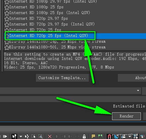 7、最后再指定一下下渲染的视频画面比例然后点击render按钮开始渲染导出啦。