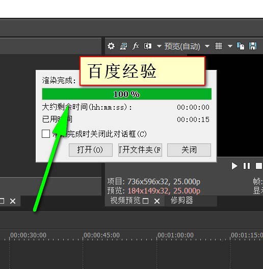 8、之后等待vegas渲染成功便能够打开文件夹查看导出的媒体啦。