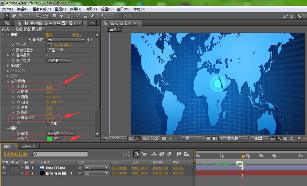 6、调整一下电波的频率、寿命和颜色就可以了,具体可以按照自己的要求改动,这样就完成了。