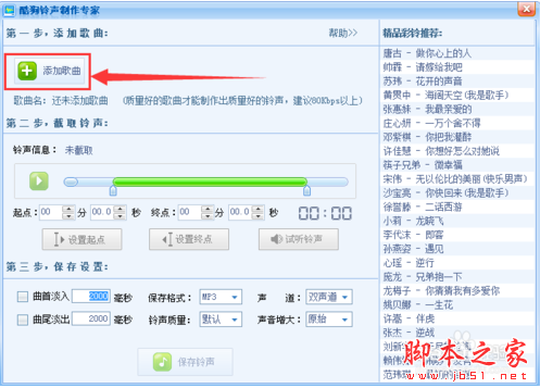 4、使用MP3剪切合并大师,就可以把一首歌的中间部分去除,也可以把多段连接在一起,这是其他MP3剪切软件做不到的