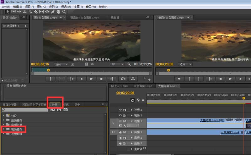 7、点击〖效果〗窗口里的〖视频特效〗;