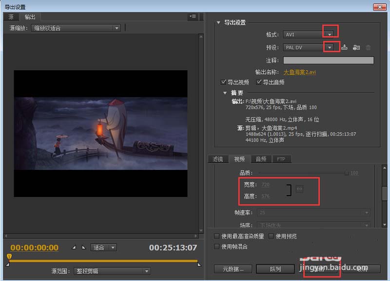 11、选择导出格式,各项参数后,点击〖导出〗。
