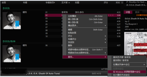 显示歌曲详细信息、缩略图检索器、专辑封面浏览器、字母导航栏、排序\分组规则等都可以自由组合,并且可以保存为自定义视图。