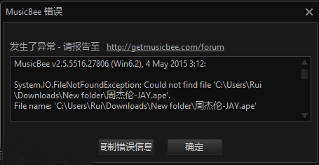 cue+ape的情况也一样。但注意,拖动的时候可能有这样一个报错,忽略即可。这个bug希望能在下个版本修复。