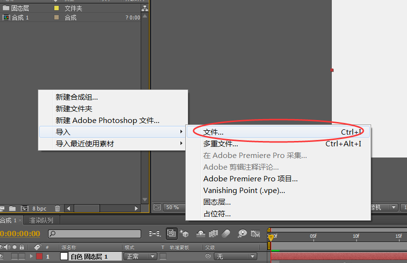 1、在项目面板的空白区域,右击鼠标选择“导入>文件”,将素材导入到项目面板。