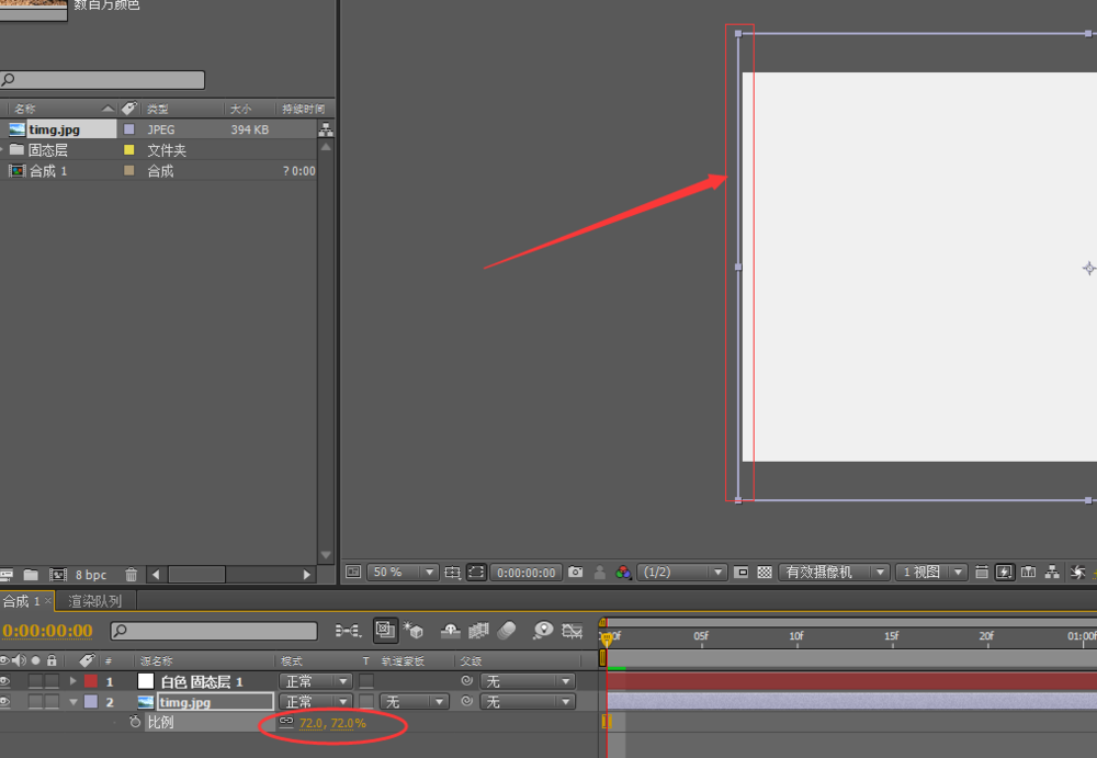 2、将图片从项目面板拖拽到图层面板的底层,调整图片的缩放比例。