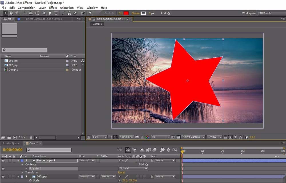 2、然后就是导入要遮罩的素材,这个素材可以是镂空的LOGO,也可以是AE里面的图形素材