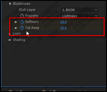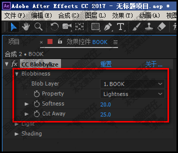 2、选中:BOOK层;然后,添加效果:扭曲--cc blobbylize