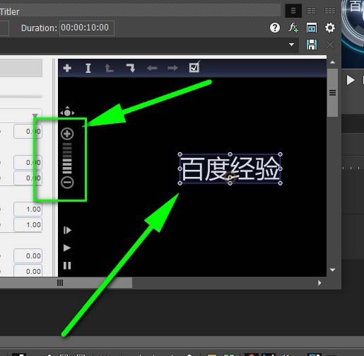 7、也可以通过左侧的圆圈加号和圆圈减号来控制vegas字幕文字的大小。