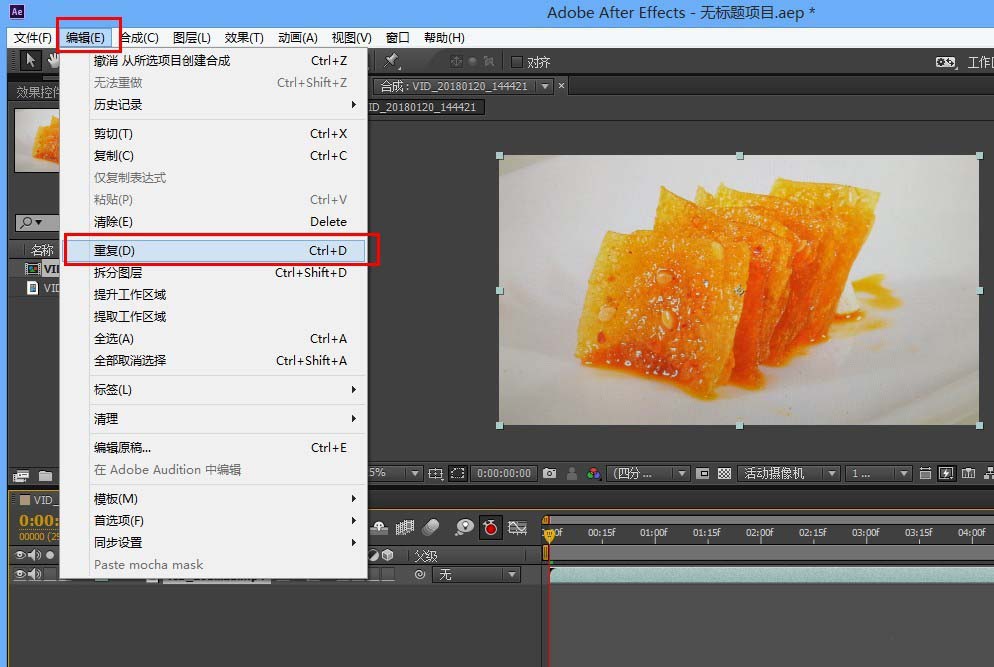 3、点击编辑重复,或者直接用快捷键ctrl +d复制一层,可以看到有了两个图层