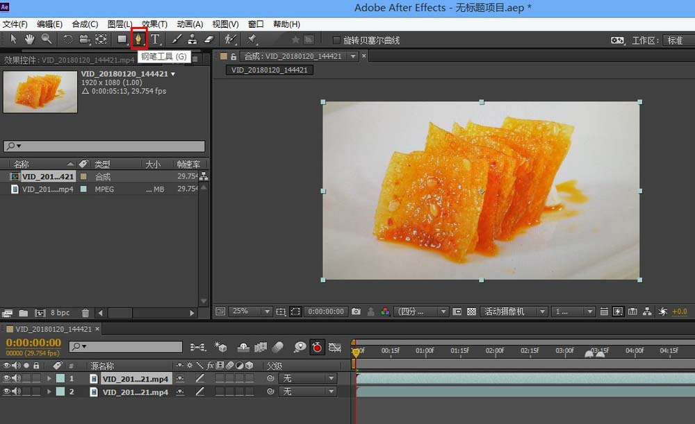 4、选择第一个图层,点击钢笔工具