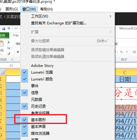 1、在菜单栏中选择窗口,勾选基本图形,就会弹出基本图形,控制面板。在基本图形面板中,切换到编辑状态。