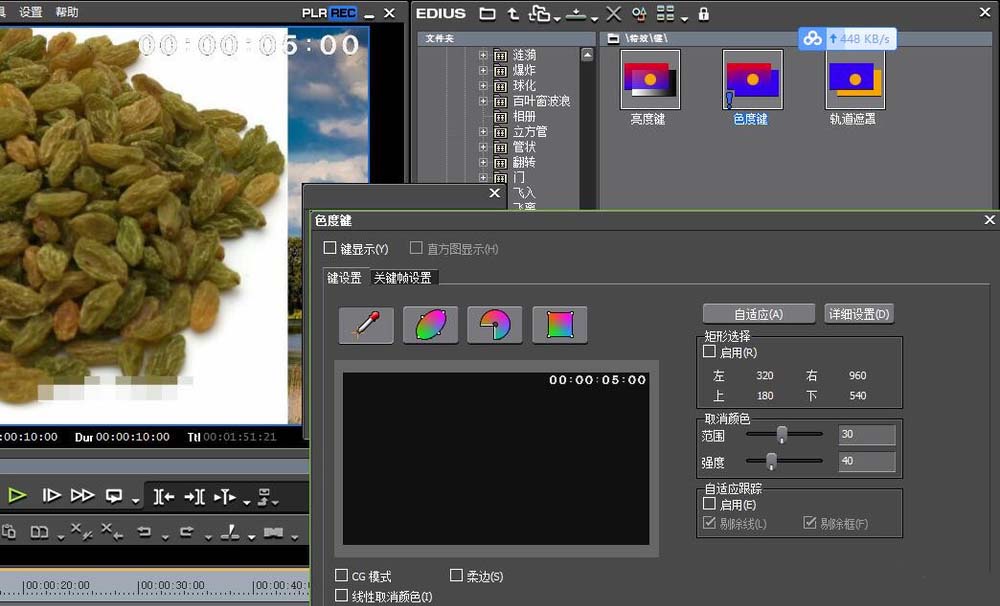 5、添加色度键,然后框选要显示的位置