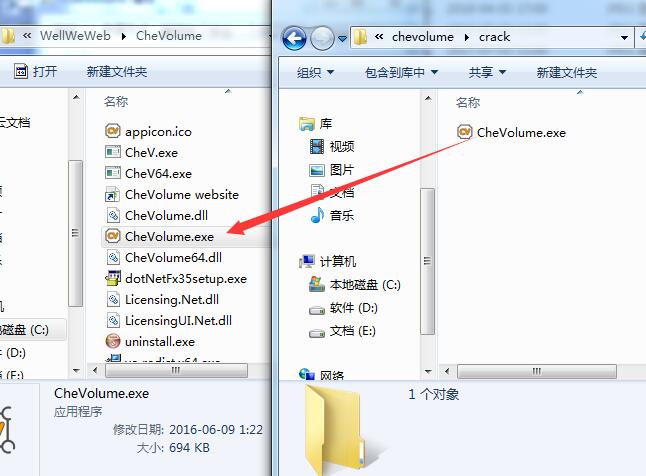 1、回到压缩包解压出的文件夹,将“Crack”中的应用文件复制到安装后文件的路径位置。