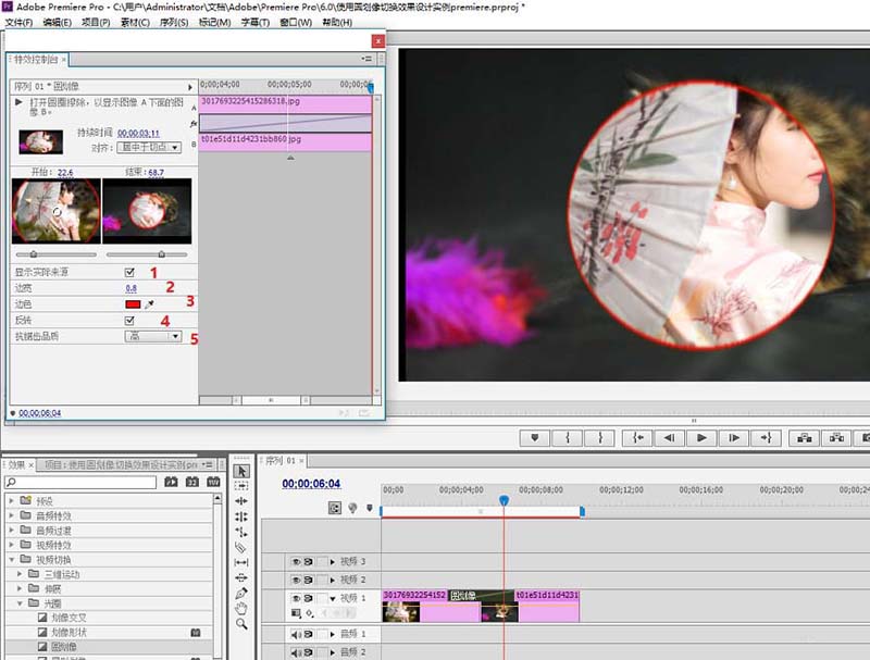 premiere中想要实现圆划像切换的过渡效果,该怎么制作呢?下面我们就来看看详细的教程。