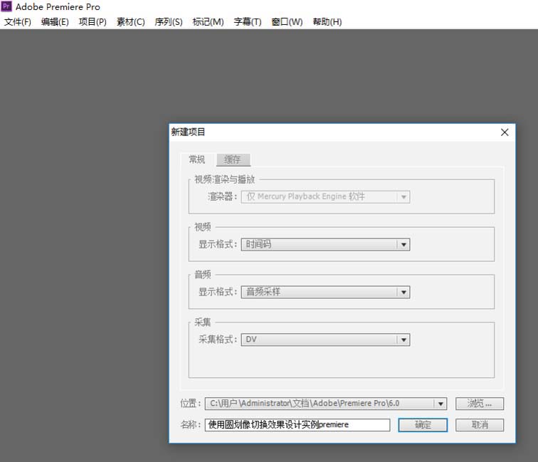 1、新建项目与序列,命名为使用圆划像切换效果设计实例premiere。