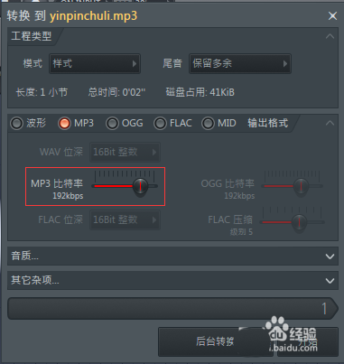 5、在弹出设置框中调节MP3比特率,左右滑动,然后点击开始即可。