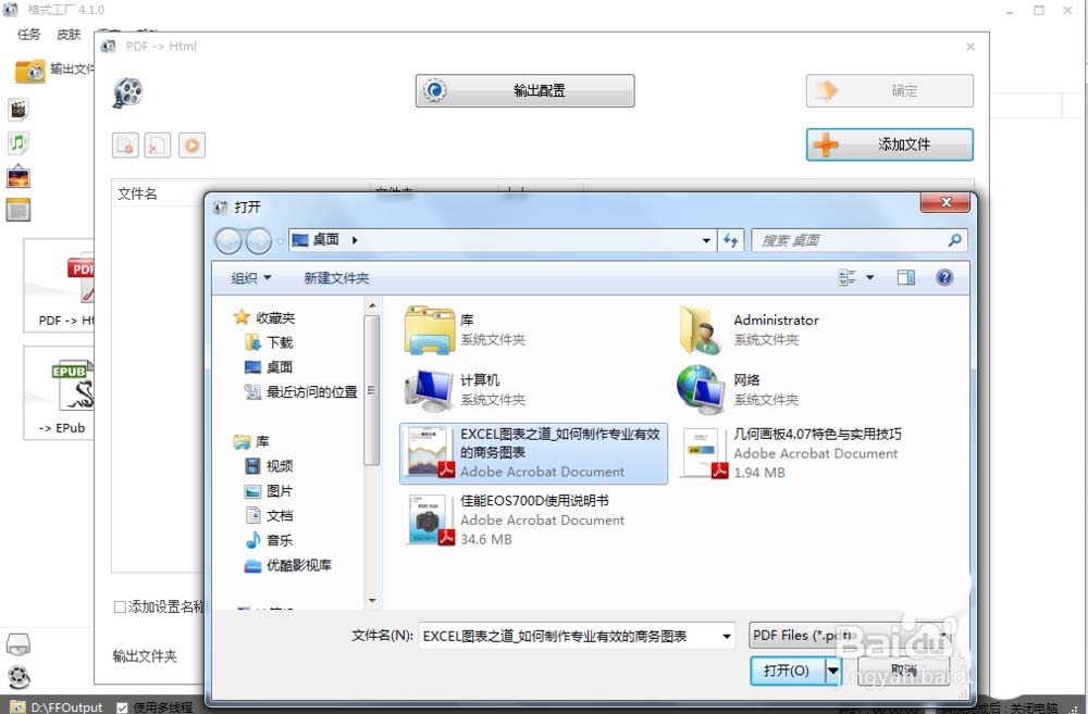 2、点击添加文件——在跳出的选择框中找到自己要转换的PDF文件——选择后点击打开,也可以双击直接打开添加文件。