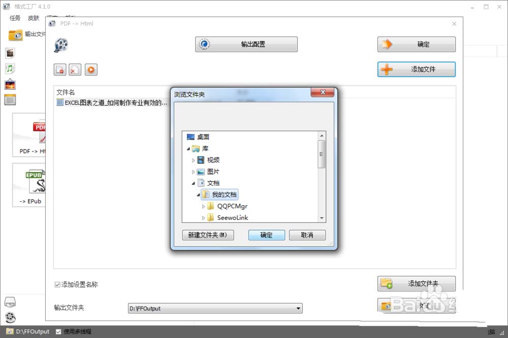 4、改变输出文件夹:在输出文件夹那里点击改变——选择自己准备要存放的文件夹,点击确定就更改了新的输出文件夹。