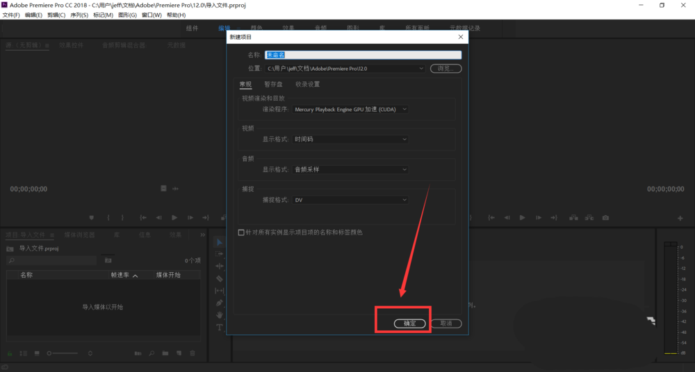 1、首先,点击打开电脑上的软件,新建一个pr项目
