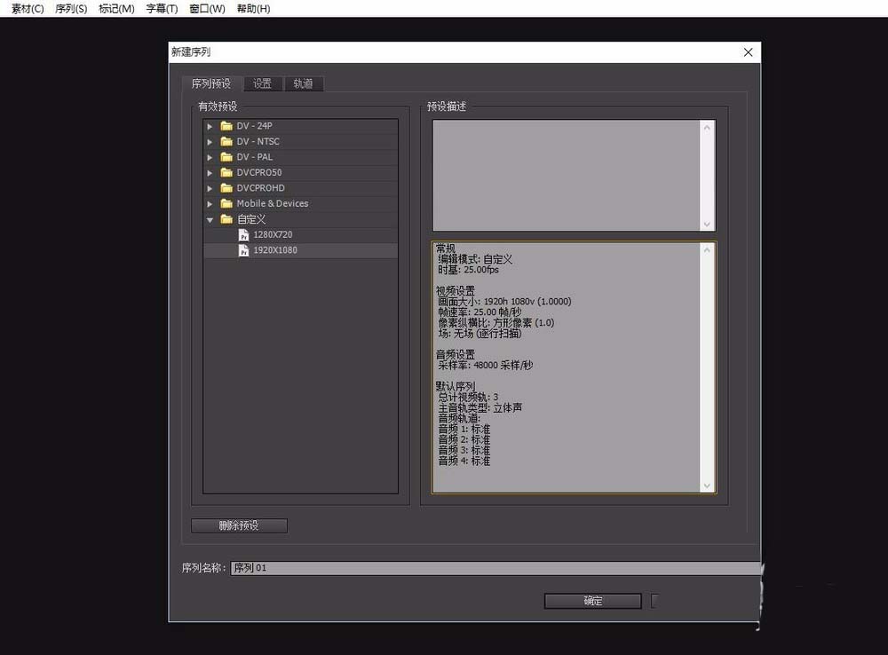 2、在新建序列里面,pr为我们准备了N多的预设供我们选择,包含了大部分的常用分辨率