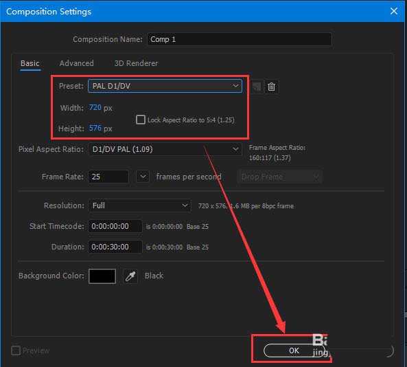 1、首先,打开After Effect软件,新建一个合成,尺寸不用太多,720*576即可。