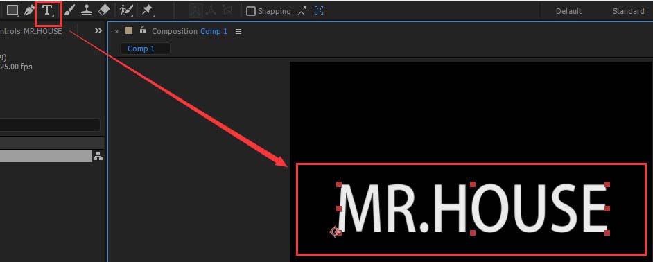 2、选择文字工具,点击这个区域的中心,输入文字内容,例如"MR.HOUSE",将文字放到屏幕正中的位置。