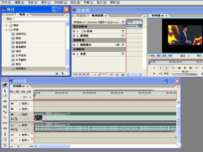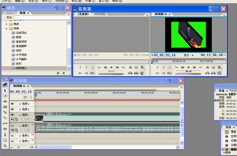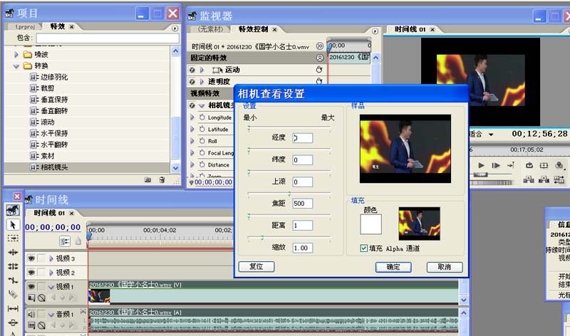 5、在时间线上播放查看效果,如何感觉不合适的话,再次调出相机查看设置对话框,重新设置参数。
