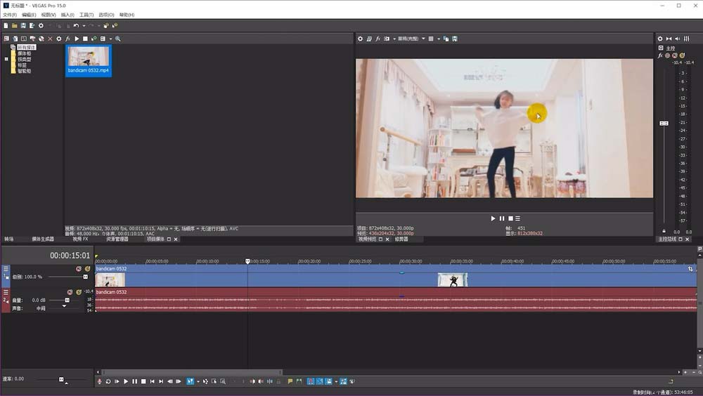 1、首先,我们打开vegas软件并导入我们的视频素材。
