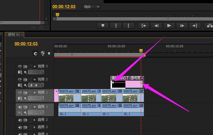 5、然后进行透明度关键帧的添加,用鼠标点击即可