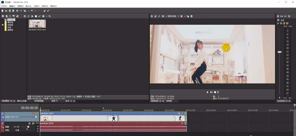 1、首先我们打开vegas软件并导入视频素材作为例子。