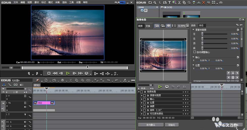 6、点击确认之后,就会返回EDIUS源文件,时间线上的素材会发生布局的变化,我们可以用视频布局来更改显示模式