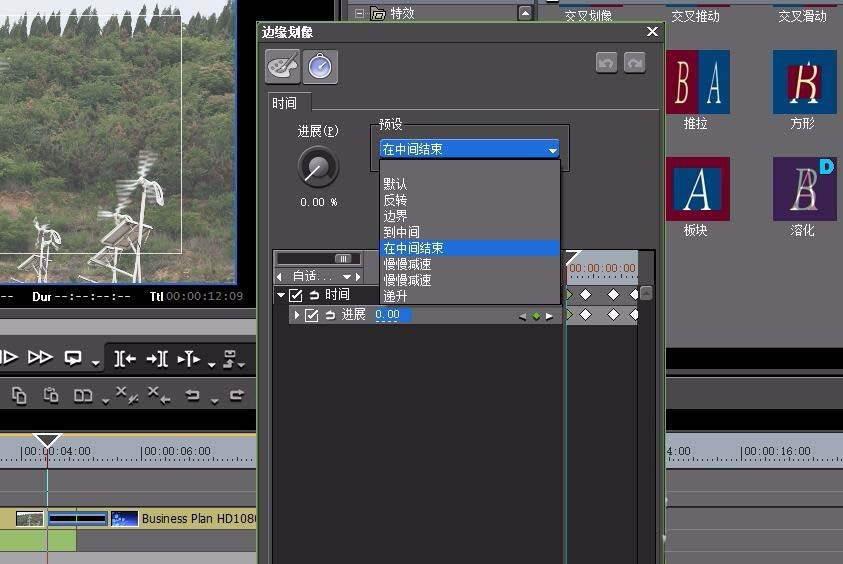 3、双击这个转场特效,可以打开其属性调节窗口