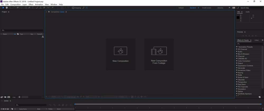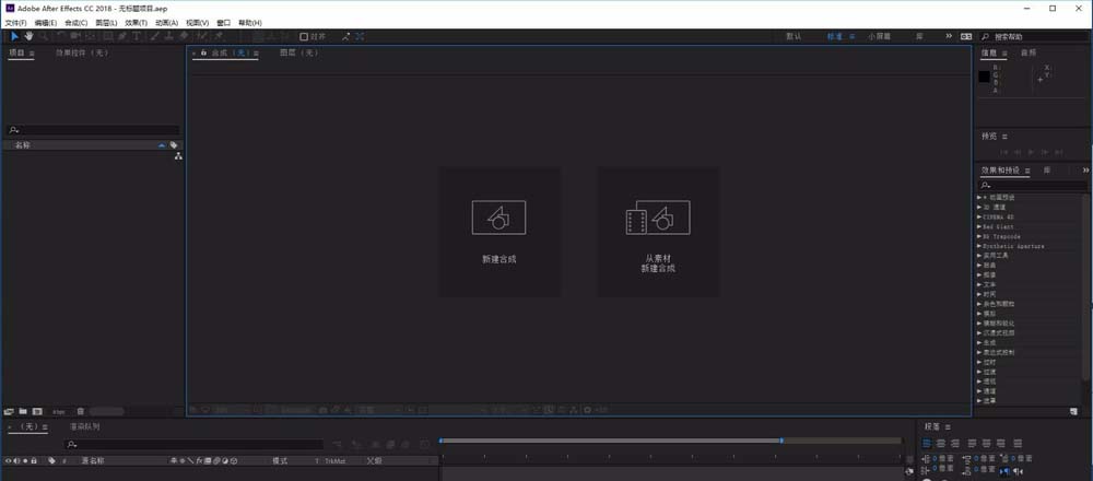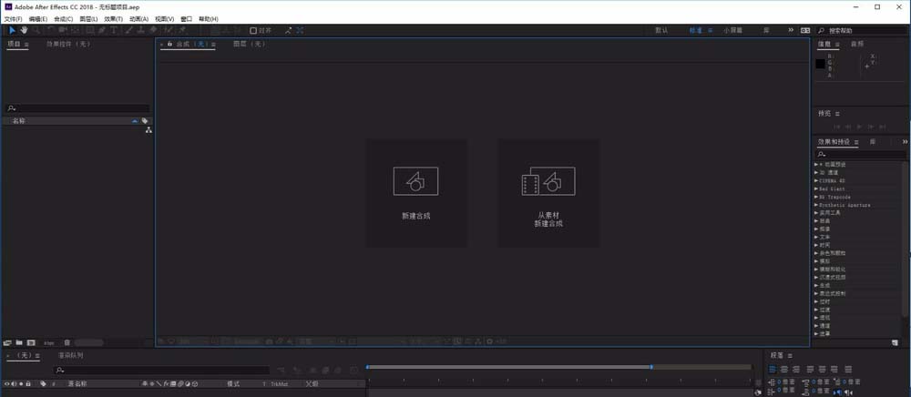 7、当我们重新打开AE CC2018,界面已经切换到英文界面。