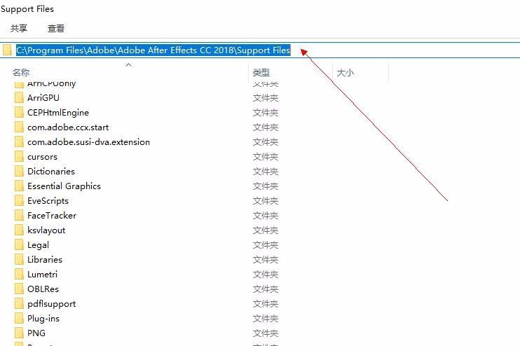 2、找到AE2018安装目录,例:软件默认安装在C盘路径C:\Program Files\Adobe\Adobe After Effects CC 2018\Support Files