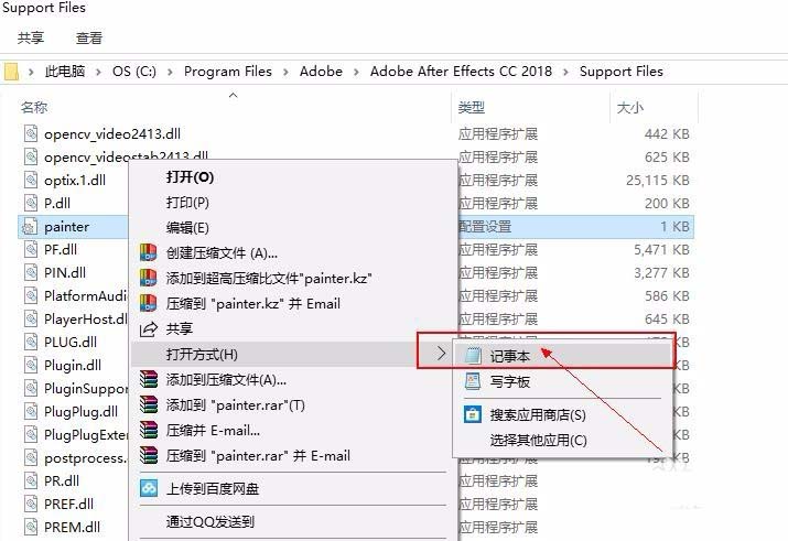 3、在路径目录里找到painter.ini文件,右击以文本的方式打开。