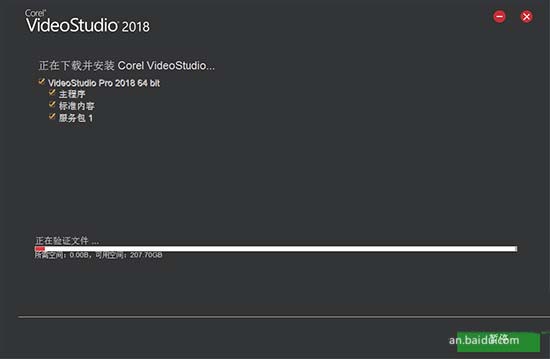 7、会声会影2018的安装速度和你的网络速度有关,请耐心等待。