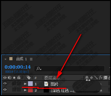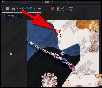 1、在新建的合成上,把图片素材导入到软件中,再拉到时间线上的图层面板这里来。图像显示在合成窗口中。