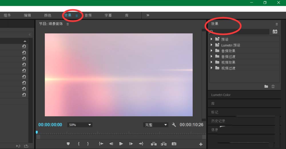 4、打开特效面板
