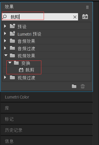 5、在特效面板搜索裁剪