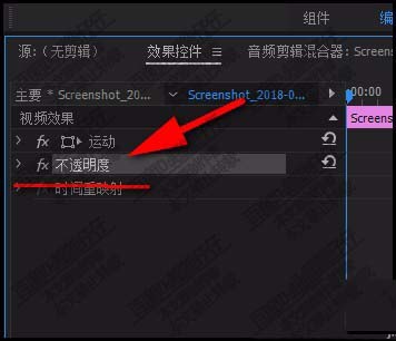 2、选中图片素材后,再来到属性面板这里,在这里找到目标属性:不透明度