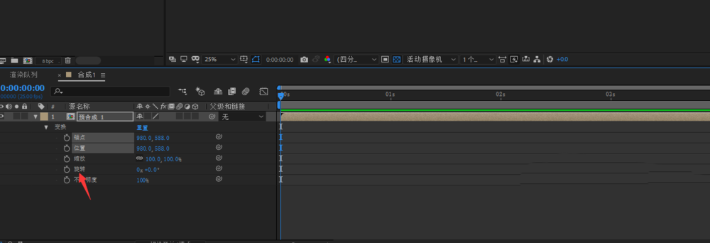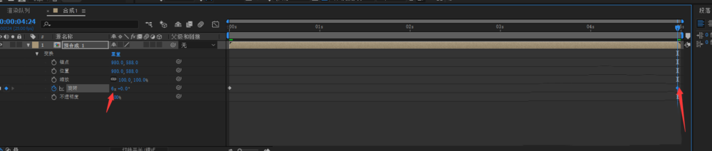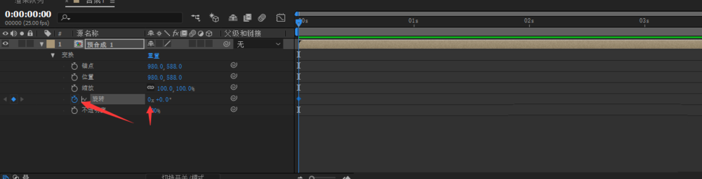 8、我们在新的合成属性里找到变换找到旋转属性