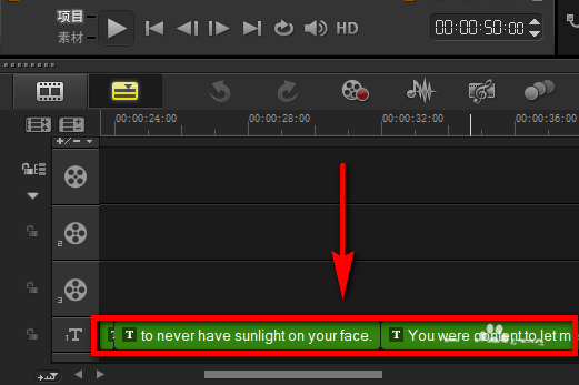 4、点击确定之后,歌词就成功被自动导入到了标题轨道上了。