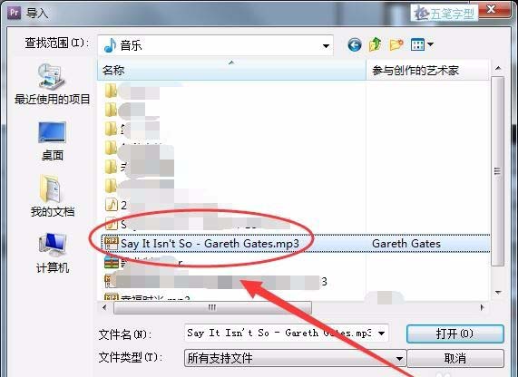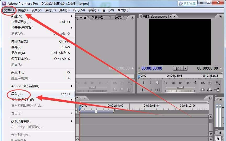 6、重新选择文件---->导入,在导入窗口中选择导入一个音乐文件。