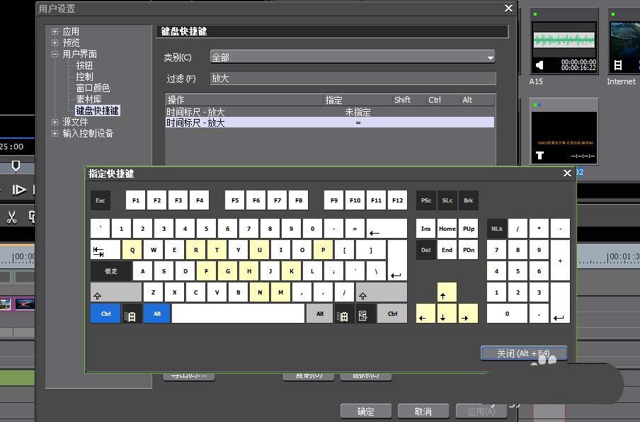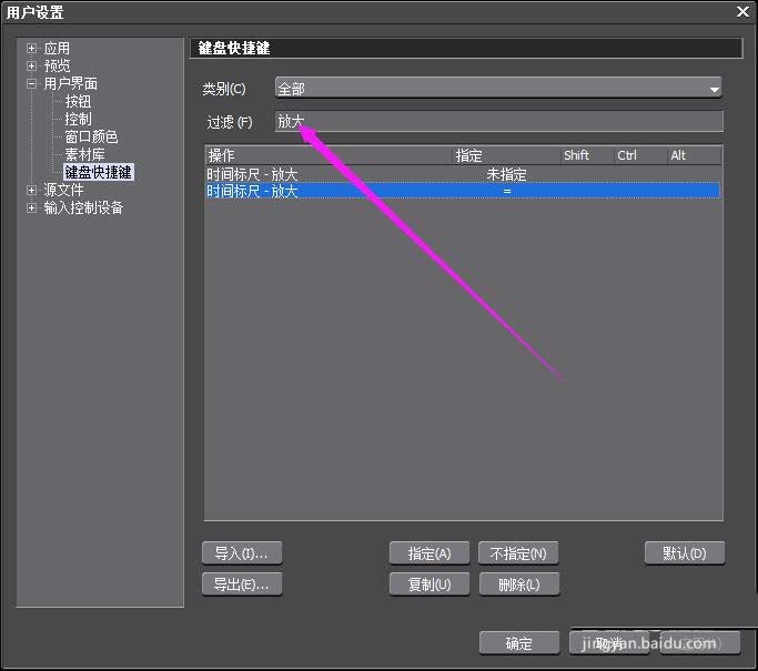 5、可以在里面找到-放大的自定义快捷键,进行自我编辑
