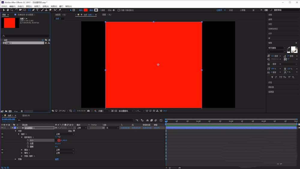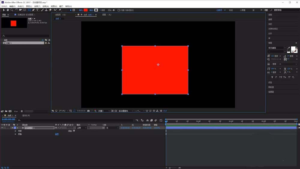 1、首先我们打开ae后制作一个矩形形状的例子。