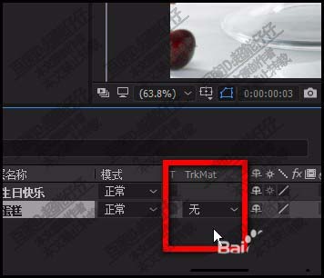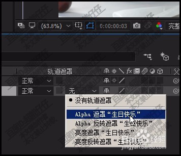 6、点击蛋糕层这一栏的V号,弹出下拉菜单,再点:ALPHA遮罩生日快乐