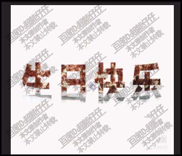 7、选择了ALPHA遮罩生日快乐后,再看窗口这里,文字已填充上了蛋糕层的图案。除了文字范围内,其余部分都隐藏了。